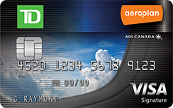 Earn 25,000 bonus miles after spending $1,000 on net purchases during the first 3 billing cycles after account opening with your TD AeroplanSM Visa® Credit Card. With this card, you earn 2x Aeroplan Miles per $1 spent on Air Canada net purchases and 1 Aeroplan Mile per $1 spent on all other net purchases. You can redeem miles for a wide choice of travel, entertainment, merchandise and gift card reward options or Use your miles for travel to more than 1,200 destinations in more than 190 countries worldwide with Air Canada and Star Alliance Member Airlines.